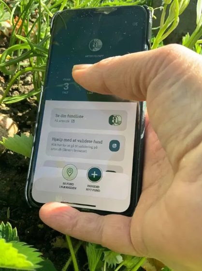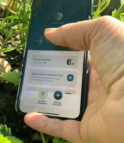 Alle fund indtastes via appen arter.dk.