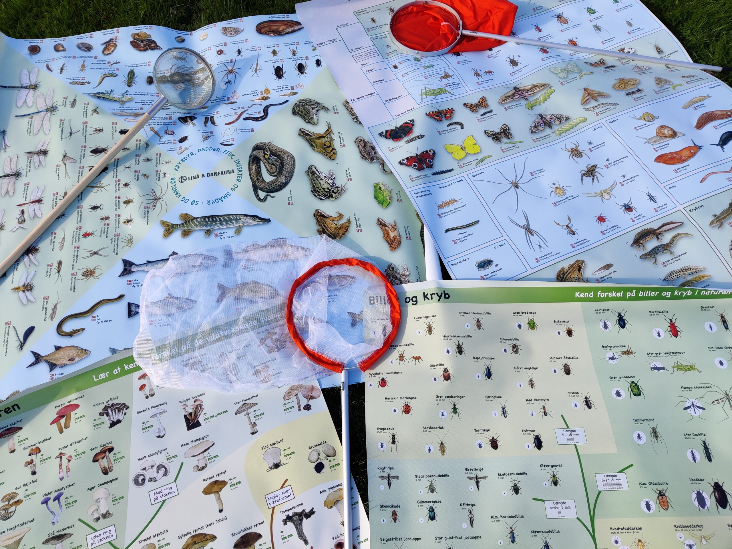 Ballerup Kommune stiller feltudstyr til rådighed, bl.a: lupglas, fangstnet, terrarier, undersøgelses-bakker, Bestemmelsesduge og fagbøger.