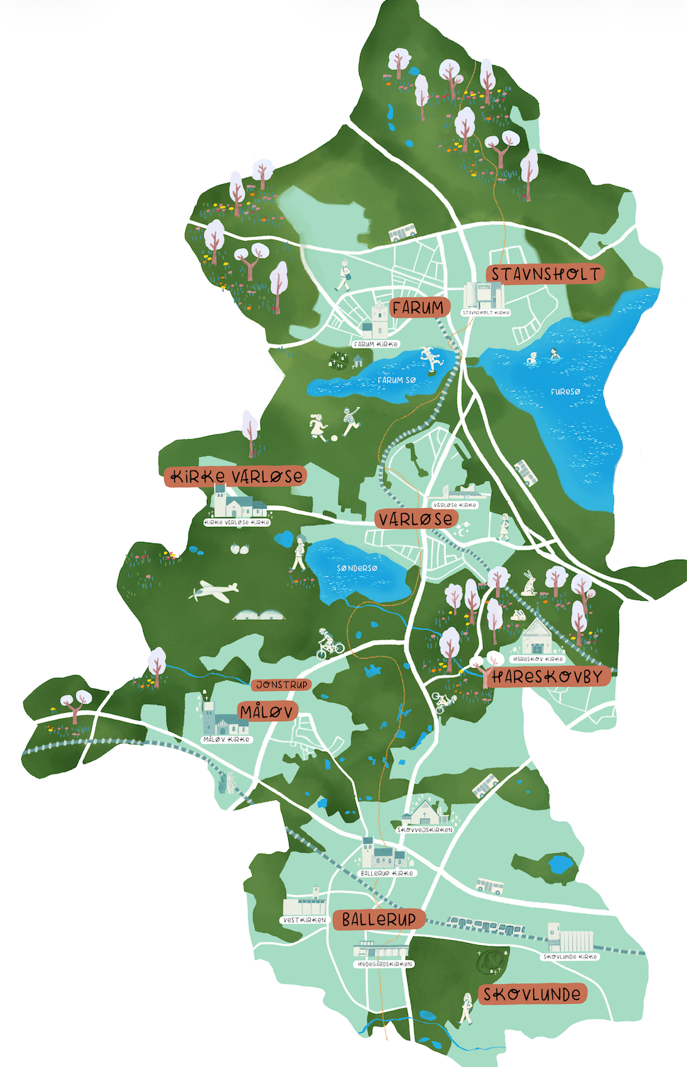 Nogle af landskabets mest særegne bygninger har noget af det mest mærk-værdige indhold, nemlig kirkerne. Dette projekt sætter de lokale kirker i spil på ét bræt: Børnenes lokalområder i Ballerup og Furesø kommuner med veje, natur, byområder, kirker og seværdigheder bliver til en spilleplade, hvor eleverne kan spille sig til viden om kirker og andre religioners bygninger, deres indhold og betydningen for religionerne. Eleverne får indblik i kirkerne og deres særlige indhold i hele provstiet, som dækker Ballerup og Furesø kommuner, og kan vælge at prøve spil-elementer i en af provstiets kirker efter eget valg.